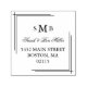 Elegant returadress gummi frimärke med ditt monogram och namn och adress inuti ett brutet ram av rent linjer.
