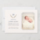 Ett elegant i monogram baby-födelsemeddelande som introducerar den nyaste medlemmen i din familj till dina vänner och nära. Den minsta designen visar ett enda foto av baby på högerna. Alla uppgifter om det nyfödda barnet, t.ex. namn, vikt och höjd, finns med på den lämnat. Den här eleganten och den sofistikerade designen omfattar även dina familjers monogram, omgivna av en löv-andedräkt. Dina familjer namn, monogrammet och andedräkten visas också på baksidan av anslagskortet. Att presentera ert nyfödda baby med stil genom att använda detta elegant monogram baby-födelsemeddelande är ett utmärkt val att skapa ett minnesvärt ögonblick.