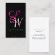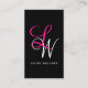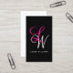 Vitt och rosa monogram affärskort med trendig monogram med initialer och namn i vitt och rosa färg mot svart bakgrund.