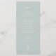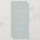 Denna bröllopsmeny-kort har en fantastisk ljus silvrigt grön färg med knivskarpa vita typsnitt. Den minimalistiska monogrammet med en linjekonst-ritning av ett blad ger en touch av naturlig skönhet och sofistikering till det övergripande utseendet.