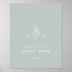 Ljust dammig salvia grön bröllop "Vänligen skriv i vår gästbok" affisch med en minimalistisk linjekonst bladmonogram design.