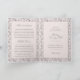 Affair-inbjudan har ett traditionellt monogram på två brev högst upp på inbjudan i skript. elegant monograminbjudan har ett blommönster för vintage på baksidan, en papprare bakgrund och klassisk stil typsnitt. Enkel svart text gör designen enkel att läsa, samtidigt som den förblir minimal och tidlös. Genom att ha inbjudan, information, mottagning och svarsinformation i ett enda vimlat kort är detta alternativ både budgetvänligt och vackert.
