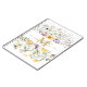 Bort med dina tankar i den här bärbara blommigten för elegant! Med en färgstark vildblomsträdgård, botaniskt monogram och gult, lila och grönt av söt.