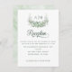 Dessa mottagningskort har en utandning av underbar eukalyptus grei som bildar elegantens monogram av snyggten av bruden och brudgummen, med en enkel vit bakgrund. Baksidan har en vattenfärgsbakgrund för grönten struktur. Sök efter matchande produkter för att slutföra inbjudan, i samlingen.