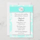 Elegant personligt bröllp, inbjudan till repetitionsmiddag i akvamarin och vitt. Fint akvamarin och vit dammbakgrund, med vit text lagrar, i mitten. Vackra bilder av ett stort akvamarin och vitt band, överst. En dekorativ rundskiva, mitten på bandet, har två brev-monogram för briden och brudgummen i initialer. Anpassa all text till kostym till din repetitionsmiddag.