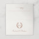 Elegantens sittplatskort med en enkel lagerkrans i parets initialer, med en passande löv mönster på insidan. Den inspireras av 1920-talets inbjudningar och blandar klassisk formalitet med modernt flair, med ett traditionellt serif-teckensnitt, ett calligraphy-skript för vintage och en ren arrangemang. Personlig med parets namn och monogram ger mallen även utrymme för att du ska kunna skriva bordsnumret och gästernas namn. Du kan också anpassa bakgrunden till färg med designredigeraren verktyg. Perfekt för bröllopsmottagningar, repetitionsmiddagar, årsdagar, födelsedagar och speciella evenemang. Tryckt färg: terakotta, brun och benvit, elfenbensgrädde. Köp samlingen för matchande kontorsmateriel och online till försäljning!