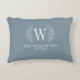 Denna blå och vita prydnadskudde är dekorerad med ett monogram i lagerblad och ditt namn och bröllopsdatum. Ett mysigt tillskott till din hemmadekoration. Gör en bra för bröllop och årsdagar. Personifiera den med din initial, namn och bröllopsdatum. Kommer i en mängd olika färger. Designad för dig av blackberry Boulevard.