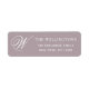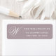 En enkel, modern returadressetikett i en skugga av dammig lila med ditt första monogram i ett klassiskt teckensnitt. Anpassa med ditt namn och adress