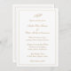 Traditional stil All in One Wedding Investigation med en enkel och klassisk design med ditt monogram överst, tillsammans med dina bröllop-detaljer omgivna av gräns. Dina uppgifter finns i ett elegant faux guld-skript och kan ändras till valfritt färg genom att klicka på knappen "anpassa". På baksidan finns en mall som fungerar som tilläggskort, där du kan lägga till dina gästuppgifter. Allt detta i en bröllopsinbjudan med en tidlös utformning är perfekt för ett formellt bröllop.