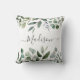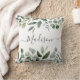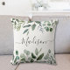 Ta med naturen inomhus med denna eleganta prydnadskudde! Med eukalyptus och tropiska blad och ett anpassat skrivet monogram är den perfekt för ett grönskainsprerat rum.