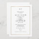 Denna klassiska Elegant Guld Bröllop spara datum är enkel och mångsidig. Den har en vit och svart chic med ett monogram, skriptdetaljer, enkel guld ram och formell redigerbar text. Klicka på knappen Redigera om du vill anpassa designen.