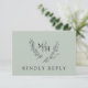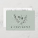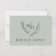 Elegant Monogram Krans QR-kod Sälggrön Bröllop Svar Behövs Svarskort med Måltidsval... Inkludera detta eleganta svarskort i din bröllopsinbjudan för att säkerställa att dina gäster kan meddela om de kan närvara, hur många som kommer och vad deras matpreferenser är. Framsidan av vårt monogram-svarskort har en lövrik botanisk lagerkrans som visar brudens och brudgummens initialer och texten "Vänligen svara" på en trendig sälggrön bakgrund. Baksidan av RSVP visas på en vit bakgrund så att dina gäster kan skriva in sina svar innan de skickar det medföljande kuvertet... eller så kan de helt enkelt skanna QR-koden på baksidan för att direkt besöka din bröllopswebbplats för att ge dig deras information och se alla detaljer som normalt skickas i en bröllopsp