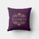 En elegant och chic lila och guld- monogram kuddfodral. Lägg till ditt namn mellan det gyllene blomsterpraktet på framsidan. Designad för dig av Blackberry Boulevard.