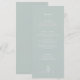 Denna bröllopsmeny-kort har en fantastisk ljus silvrigt grön färg med knivskarpa vita typsnitt. Den minimalistiska monogrammet med en linjekonst-ritning av ett blad ger en touch av naturlig skönhet och sofistikering till det övergripande utseendet.