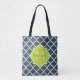 En elegant navy blue quatrefolied mönstrad till väskan med ett skallopat märke i en vibrerande vår-grönt som du kan anpassa genom att lägga till ditt namn och en monogrammatisk inledning i. Detta är en del av Sailor Blue and Lime Slå Vår-samlingen.