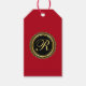 Pressa upp paket och party favors med en märkre av medalongåva med elegant i monogram. Här i ett djupt rött läge kan du ändra bakgrunden färg till vilket annat färg som helst genom att markera "anpassa den" och välja ett annat färg. Lägg till ditt monogram genom att ersätta det provmonogram som visas i designmallen. Du kan centrera om monogrammet om det behövs, och du har valt alternativet "anpassa det". Den omvända sidan av presentens märkre har lämnats tom för din handskrivna anteckning, eller så kan du skriva text på baksidan som du vill.