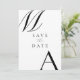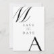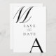 Modern Black and White Bröllop spara datum. Har fet monogramtypografi och minimal grafisk design.