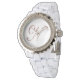 Elegant Monogram N Ro Guld mot vit bakgrund, ingen egentlig ro guld används i den skapar. Rhinestone White Enamel Monogrammed Watch