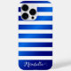Skapa ett telefonfodral för elegantens personlig med ett blått och vitt strippat mönster. Blue rand imiterar metalliskt yta. Med textmallen kan du enkelt anpassa telefonväskan med ditt namn.