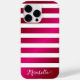 Skapa ett telefonfodral för elegantens personlig med ett shock rosa och vitt strimlat mönster. Shock rosa imiterar metalliskt yta. Med textmallen kan du enkelt anpassa telefonväskan med ditt namn.