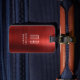 Elegant Monogram Red Brushed Metal Bagagebricka