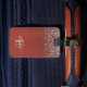 Elegant Monogram Red Brushed Metall Bagagebricka