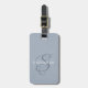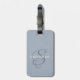 Elegant dusty grått-blå tryckt läderbagagetagg med anpassningsbarnas monogram i ett snabbt skript med kalligrafteckensnitt med ditt namn i en modern typkonstruktion.
