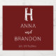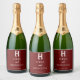 Elegant, minimal, burgundröd och vit Inledande mousserande vin-etiketter. Modern Bröllop, monogram, maronskript. För brud och brudgumm. Du kan ändra designredigeringen med namn, initial och date.
