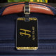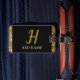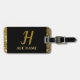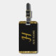 Elegant, minimal, svart, guld första bagagetagg. Personlig Modern, monogram, skriptutformning. Du kan ändra designredigeringen med namn, inledningsvis.