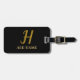 Elegant, minimal, svart, guld första bagagetagg. Personlig Modern, monogram, skriptutformning. Du kan ändra designredigeringen med namn, inledningsvis.