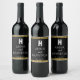 Elegant Monogram-skript Modern Bröllop Black Guld Vinflaska Etikett
