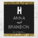 Elegant, minimal, svart, guld och vit Första Vin-etiketten. Modern Bröllop, monogram, skriptutformning. För brud och brudgumm. Du kan ändra designredigeringen med namn, initial och date.
