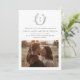 En elegant monogram svart och vit formell bröllopsinbjudan med handritad krans och klassisk typografi. Klicka på redigeringsknappen för att anpassa denna design.