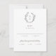 Ett elegant monogram svart och vitt formellt bröllops-svarskort med handritad krans och klassisk typografi. Klicka på redigeringsknappen för att anpassa denna design.