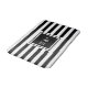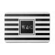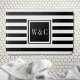 Elegant personlig monogram badmatta med svart-vit randigt mönster och dina initialer i en svart kantad fyrkant med klassisk vit text. Designad av Thisisnotme©