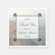 De här servetterna är perfekt för alla par som planerar ett romantiskt giftermål vid havet. Utformningen har en mörk-grönt-kantlinje med matchande scallop-motivhörn på en sandy-scenbakgrund. Den enkla utformningen kan vara personlig till kostym för din speciella händelse och kommer att vara perfektens tillbehör till alla strandteman party, inklusive: möhippor, förlovningar, möhippor, födelsedagsfester och mycket mer.