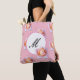 Elegant monogram Tote Rosa ros Flowers Anpassningsbar bakgrund färg.