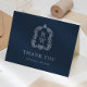 Elegant Monogram Vapensköld Navy Blue Bröllop Tack Kort