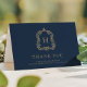 Elegant Monogram Vapensköld Navy Blue Guld Student Tack Kort