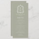 Den här vintage-inspirerade bröllop-menydesignen har ett par vitt mongram initialer i ett öppet serif-teckensnitt ovanför och under en skiljelinje och omges av en botanisk vapensköld av en elegant på en bakgrund av en sage grönt. Kortets baksida är en solid sage grönt.