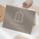 Elegant Monogram Vapensköld Taupe Bröllop Tack Kort