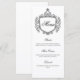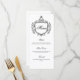 Add a refined touch to your reception tables with this elegant wedding menu card featuring a classic crest design. The ornate decorative frame creates a sophisticated focal point while the graceful “Menu” headline and structured layout present each course with timeless style.