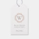 Elegant Monogram Wedding Modern Classic Modern Favor Gift Tag. Elegant gray text on white with a single initial monogram at the top, encircled by a copper blush colored embellishment frame. Customize with Bride & Groom's Name and wedding date, and Thank you. Back is shown in solid white. We invite you to visit our Zazzle store, Austen & Grace, to view the full wedding suite, matching products and more. Please contact us if you require any assistance.