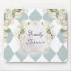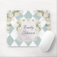 Introducing our Elegant Monogram White Roses Green Leaves Diamond Mouse Pad. A pretty blooms add nature vibes to your desk. Suitable for classic art lovers.
