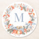 Elegant Monogram Wreath Dusty Blue Modern Underlägg Papper Rund