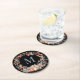 A timeless holiday coaster featuring an elegant watercolor Christmas wreath in soft dusty blue, red, and peach, delicately framing a personalized monogram in modern typography.