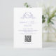 Kort för elegant OSA online bröllop med QR-kod och ett exekutivt handtaget monogram som visar parets initialer. Återaktiv i en lavendelfärgad lila tvättar. En del av vår "Lavender Watercolor Botanical Monogram Bröllop"-samling med en mängd olika samordningsprodukter.
