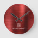 Personlig Elegant Monogrammed Red Brushed Round Clock.