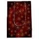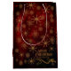 Vacker Personlig God Jul PRESENTPÅSE på röd till burgunderbakgrund med ett elegant guldliknande mönster med små blommor och stjärnor. Perfekt för presenter . Du kan uppdatera all text, ändra familjens namn eller använda ett parnamn eller ett företagsnamn. Kan bli en bra företags- eller familjepåse.
