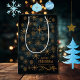Vacker Personlig God Jul PRESENTPÅSE på en TEAL BLÅ bakgrund med ett elegant mönster med små blommor och stjärnor. Du kan uppdatera all text, ändra familjenamnet, eller använda ett par namn eller ett företagsnamn. Skulle också göra en bra företagspresentpåse.
